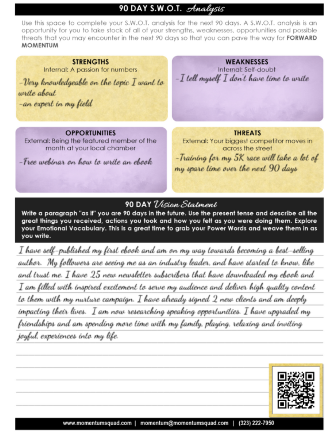 Samples, Blank Worksheets and Inspiration to Get You in MOMENTUM!